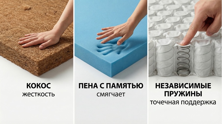 - Грудной отдел: Подойдет умеренная жесткость с мягким верхним слоем (пеной).